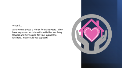 Person centredness – PKC video on a home visit Reablement + video on =supporting people to remain independent Supporting people to walk + video on sit to stand Food preparation + video on food preparation Washing and dressing Caring for someone with Dementia + Video on Olive’s story Continence care Maintaining your own well being Maintaining ongoing learning |